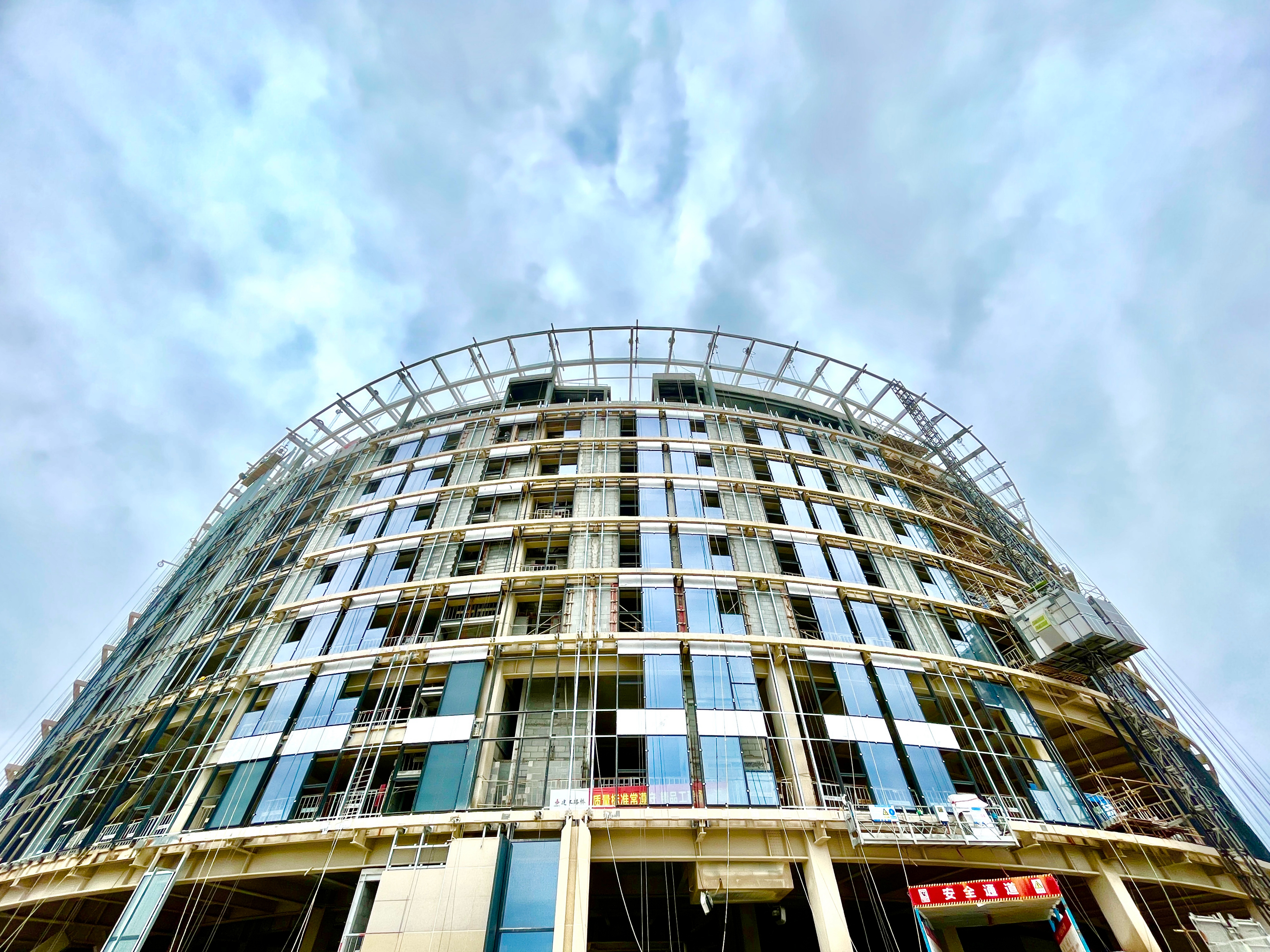 幕墻首批玻璃安裝完成