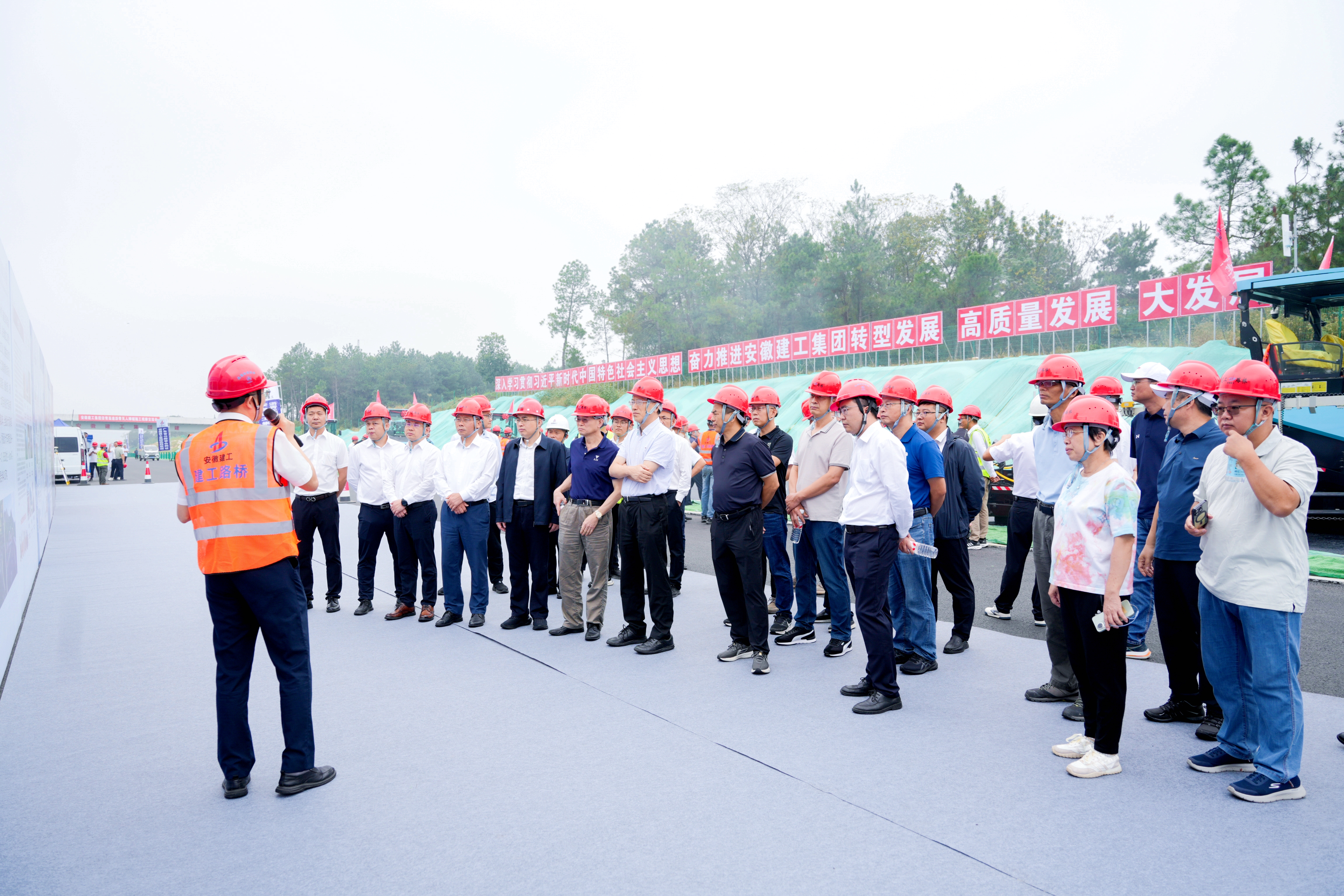 10月12日上午,集團(tuán)投資建設(shè)的第三條高速公路——涇青高速項(xiàng)目瀝青無人攤鋪施工觀摩交流會(huì)在安徽涇縣舉行。建工股份黨委副書記、總經(jīng)理錢申春出席并主持交流會(huì),廣東省公路學(xué)會(huì)理事長(zhǎng)洪顯誠及廣東省內(nèi)十余家交通建設(shè)企業(yè)代表共40余人參加?;顒?dòng)采用“現(xiàn)場(chǎng)觀摩+交流研討”形式,共同見證智能建造技術(shù)在集團(tuán)高速公路建設(shè)中的實(shí)踐應(yīng)用。