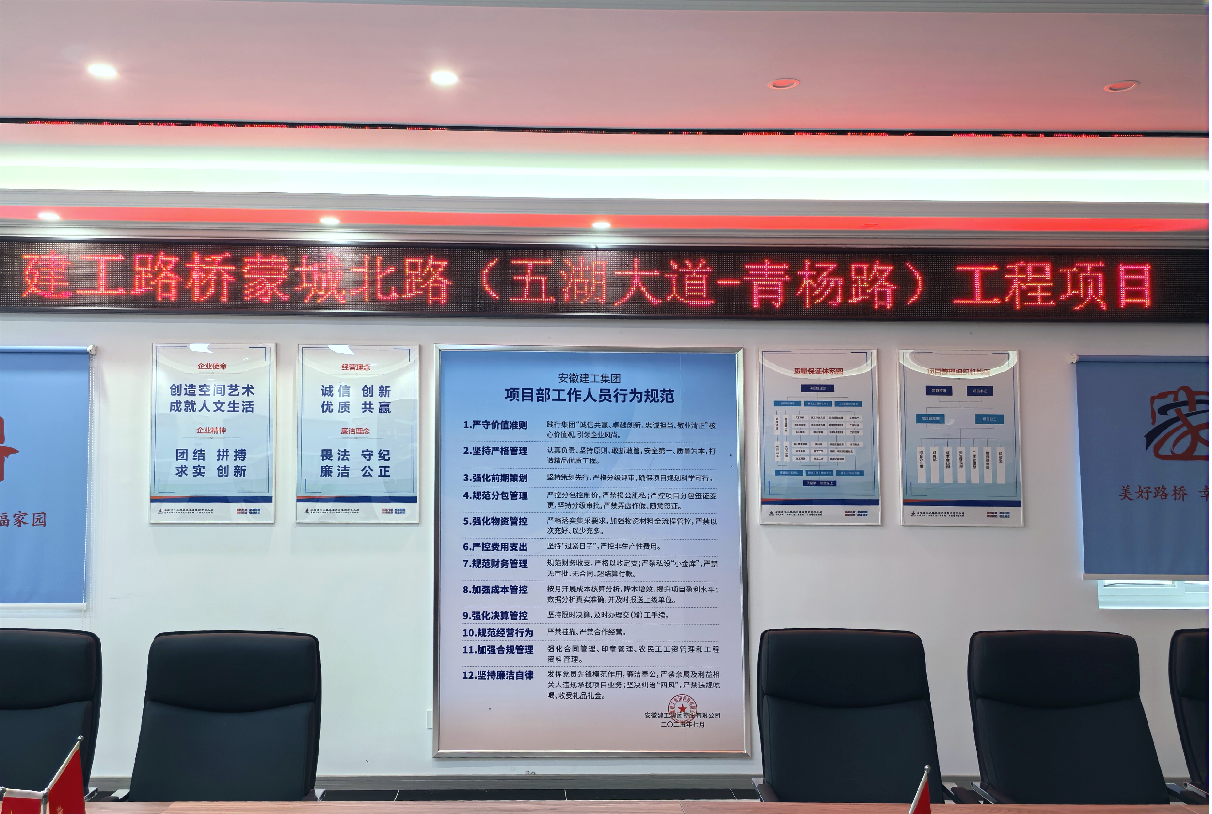 合肥分公司精準(zhǔn)聚焦關(guān)鍵規(guī)章制度,多措并舉推動(dòng)制度落地見效。強(qiáng)化陣地建設(shè),營造宣貫氛圍。在會(huì)議室、辦公區(qū)等顯著位置,統(tǒng)一、規(guī)范張貼制度文件及核心要點(diǎn)海報(bào),打造可視化學(xué)習(xí)陣地,引導(dǎo)全員形成“天天看、天天學(xué)、時(shí)時(shí)學(xué)、處處學(xué)”的常態(tài)化學(xué)習(xí)習(xí)慣,助力制度要求入腦入心。豐富學(xué)習(xí)場景,深化制度理解。構(gòu)建“常態(tài)化滲透+專題化精講”相結(jié)合的學(xué)習(xí)模式,將制度宣貫學(xué)習(xí)深度融入晨會(huì)、周例會(huì)、班前會(huì)等日常工作場景,圍繞制度條款開展專題學(xué)習(xí)和研討交流,推動(dòng)制度認(rèn)知從知曉向理解轉(zhuǎn)變。健全督查機(jī)制,保障執(zhí)行實(shí)效。針對項(xiàng)目部制度執(zhí)行情況組建專項(xiàng)督查組進(jìn)行檢查,重點(diǎn)核查合同管理、物資采購、成本管控等關(guān)鍵環(huán)節(jié),建立問題臺(tái)賬并明確整改時(shí)限,實(shí)行閉環(huán)管理,并將制度執(zhí)行情況納入項(xiàng)目考核要點(diǎn),確保制度從紙面、墻面轉(zhuǎn)化為行動(dòng)自覺。