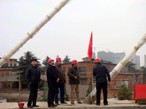 戴總一行參觀了大橋南岸主橋施工現場。在聽取了項目部江仲明經理對前期工作和當前施工進展情況的匯報后,戴總對我部工作給予了高度評價,同時提出了更高的要求,希望我部繼續(xù)努力,再上新臺階。隨后,戴總一行還登上了主橋橋面,實地察看了正在緊張進行的主橋前支點掛藍施工,親切慰問了冒著嚴寒戰(zhàn)斗在一線的現場施工工人和技術人員,并就主橋完成后如何拆除前支點掛藍提出了指導性的方案。
