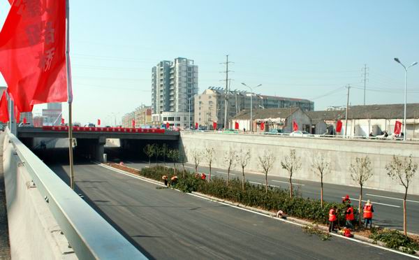 新蚌埠路與北二環(huán)路立交橋采取北二環(huán)路下穿新蚌埠路的路塹式結(jié)構(gòu),通過立交銜接,兩條路實(shí)現(xiàn)交通分流,成為北部城區(qū)的兩條快速通道。該項(xiàng)目自2008年9月開工以來,積極響應(yīng)公司號(hào)召,發(fā)揚(yáng)“團(tuán)結(jié)拼搏、優(yōu)質(zhì)高效”的精神,趕進(jìn)度、保質(zhì)量、重安全,全體員工們團(tuán)結(jié)一致,艱苦奮斗,于2009年3月順利完成施工任務(wù),比原計(jì)劃工期提前了兩個(gè)多月,深受業(yè)主和社會(huì)各界的好評(píng)。該項(xiàng)目在施工過程中獲市重點(diǎn)局通報(bào)嘉獎(jiǎng),榮獲了建工集團(tuán)優(yōu)秀項(xiàng)目部、安全文明示范工地等稱號(hào),項(xiàng)目經(jīng)理李建成被評(píng)為建工集團(tuán)優(yōu)秀項(xiàng)目經(jīng)理,工程組被評(píng)為建工集團(tuán)先進(jìn)班組。