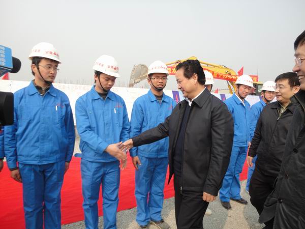 3日下午,黃省長蒞臨寧績高速07標(biāo)視察。在該項(xiàng)目現(xiàn)場,黃省長與汪總進(jìn)行了親切地交談。黃省長高度評(píng)價(jià)了公司近年來的發(fā)展歷程,高興地說,“以前安徽路橋還很困難,發(fā)不出工資;今天看到了安徽路橋足跡遍布十二省市,規(guī)模大,效益好,我由衷地感到欣慰?!迸R上車前,黃省長緊握汪總的手語重心長地鼓勵(lì)安徽路橋做大做強(qiáng),為推動(dòng)安徽公路事業(yè)發(fā)展承擔(dān)更多的責(zé)任。