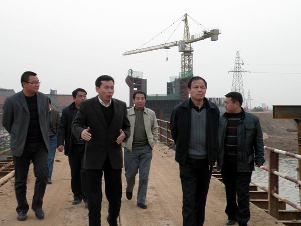 下午5點(diǎn),潘主席一行經(jīng)過3個(gè)多小時(shí)的車程后來到項(xiàng)目施工現(xiàn)場(chǎng),先后視察了兩個(gè)標(biāo)段的建設(shè)工地和預(yù)制梁場(chǎng)。視察過程中,潘主席不時(shí)的對(duì)施工進(jìn)展情況和技術(shù)要點(diǎn)進(jìn)行詳細(xì)的詢問,對(duì)公司精湛的施工技術(shù)和良好的管理表示敬佩。