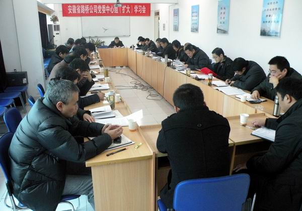 212日上午,安徽省路橋公司黨委中心組擴(kuò)大學(xué)習(xí)會(huì)在公司機(jī)關(guān)四樓會(huì)議室召開,會(huì)期一天。公司領(lǐng)導(dǎo)班子成員、各基層單位及機(jī)關(guān)各職能部門負(fù)責(zé)人和部分項(xiàng)目經(jīng)理代表參加了學(xué)習(xí)會(huì)議。公司總經(jīng)理汪衛(wèi)東主持會(huì)議。