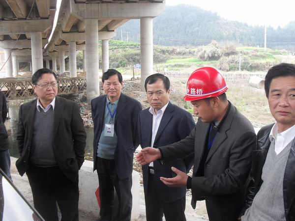 329下午,安徽省高速公路控股集團有限公司副總經(jīng)理錢東升蒞臨黃祁高速08標施工現(xiàn)場視察指導工作。省指建設處處長蘇新國、總工陳政平、項目辦副主任蔡駿等陪同視察。