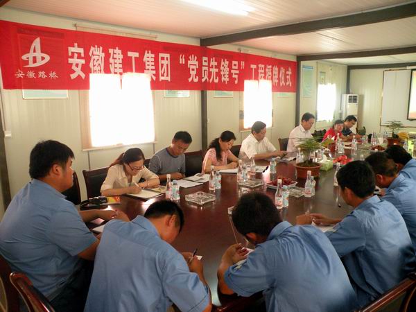 718上午9點(diǎn),安徽建工集團(tuán)公司黨委副書(shū)記李長(zhǎng)斌、紀(jì)委書(shū)記、工會(huì)主席牛曙東、黨委工作部副主任邢應(yīng)梅及國(guó)內(nèi)公司的同仁們,迎著熱浪來(lái)到市政工程分公司環(huán)湖北路01標(biāo)舉行“黨員先鋒號(hào)工程”授牌儀式。公司承建的合肥市懷寧北路1標(biāo)、阜陽(yáng)北路高架2標(biāo)、環(huán)湖北路1標(biāo)被授予“黨員先鋒號(hào)工程”稱號(hào)。公司黨委書(shū)記陳光磊、副總經(jīng)理、總工程師彭申凱、黨委辦公室主任劉昀、市政工程分公司經(jīng)理李建成等參加了授牌儀式。