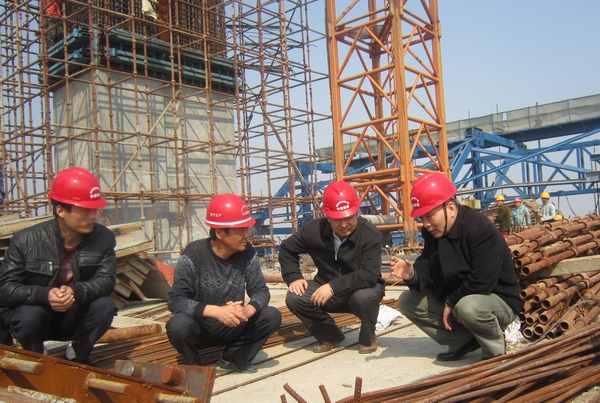 汪總一行深入施工現(xiàn)場,實地查看當(dāng)前的施工進(jìn)展情況。在主橋施工現(xiàn)場,汪總仔細(xì)詢問了關(guān)鍵性節(jié)點工程的施工計劃,現(xiàn)場探討了質(zhì)量、安全管理等問題,并對項目施工可能遇到的難題進(jìn)行了溝通。