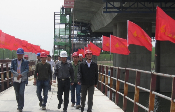 何局長(zhǎng)一行聽(tīng)取了公司總經(jīng)理助理傅月斌同志關(guān)于當(dāng)前施工總體情況的匯報(bào),并深入到主橋施工現(xiàn)場(chǎng),詳細(xì)詢(xún)問(wèn)和查看了工程標(biāo)準(zhǔn)化建設(shè)和質(zhì)量安全情況,對(duì)該項(xiàng)目總體建設(shè)情況給予了肯定。