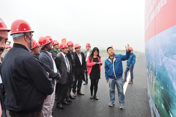 10月21日,阿爾及利亞公共工程管理研修班學(xué)員應(yīng)安徽建工集團(tuán)邀請,來到公司G206改建工程4標(biāo)段參觀考察。集團(tuán)副總經(jīng)理許克順、總經(jīng)理助理汪衛(wèi)東、公司副總經(jīng)理錢申春等人陪同。