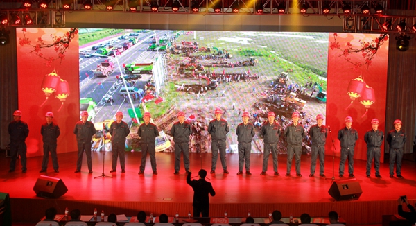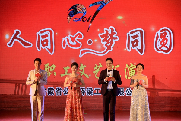 演出現(xiàn)場二樓眺臺正上方懸掛著醒目的橫幅:“堅持創(chuàng)新引領(lǐng) 搶抓發(fā)展機遇 為早日實現(xiàn)‘兩個超百億’目標而努力奮斗”,舞臺正中,“人同心 夢同圓”的晚會主題熠熠生輝。公司黨委書記、董事長、總經(jīng)理孫學軍在致辭中指出,2016年,在建工集團黨委的正確領(lǐng)導下,公司迎來了發(fā)展史上具有里程碑意義的一年,公路工程施工總承包特級資質(zhì)和行業(yè)工程設(shè)計甲級資質(zhì)順利獲批,發(fā)展質(zhì)量大幅提升,競爭力、影響力不斷增強,職工文化生活豐富多彩,企業(yè)活力、凝聚力進一步增強,這是廣大職工共同奮斗的結(jié)果,他代表公司黨委和領(lǐng)導班子向全體職工及家屬表示衷心的感謝和崇高的敬意。對下一步工作,孫學軍強調(diào),2017年,要充分發(fā)揮特級資質(zhì)優(yōu)勢,總結(jié)提升信息化建設(shè),繼續(xù)完善各項基礎(chǔ)管理,進一步加強企業(yè)凝聚力,繼續(xù)推進公司改革發(fā)展事業(yè)向前發(fā)展。