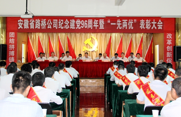 風(fēng)雨兼程數(shù)十載,凝心聚力創(chuàng)未來。6月29日上午,公司隆重舉行紀(jì)念中國共產(chǎn)黨成立96周年暨“一先兩優(yōu)”表彰大會。公司中層以上黨員干部,各基層黨組織負(fù)責(zé)人,團委委員,受表彰的先進基層黨組織、優(yōu)秀共產(chǎn)黨員、優(yōu)秀黨務(wù)工作者、優(yōu)秀團員青年和路橋誠信敬業(yè)青年120余人參加了會議。會議由公司黨委委員、副總經(jīng)理、總工程師彭申凱主持。