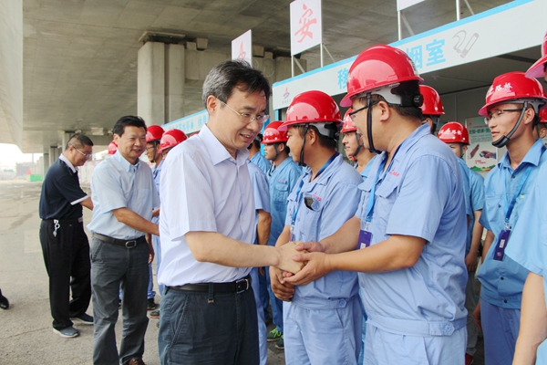 連日以來,高溫酷暑籠罩著江淮大地,但廣大安徽路橋人依然堅(jiān)守施工一線,揮汗如雨。7月26日上午11時(shí),安徽省住建廳黨組書記、廳長張?zhí)炫啵h組成員、副廳長吳桂和,副巡視員劉少為一行在集團(tuán)工會(huì)主席徐曉光,公司董事長、黨委書記、總經(jīng)理孫學(xué)軍等有關(guān)人員的陪同下,深入合肥阜陽北路高架項(xiàng)目看望慰問一線建設(shè)者,叮囑項(xiàng)目部做好防暑降溫工作,切實(shí)保障職工身心健康。