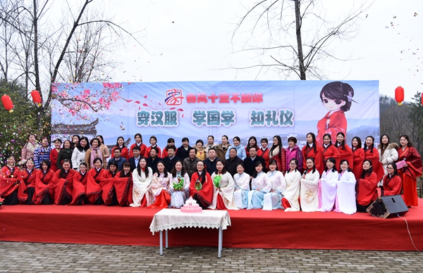 巾幗建功新時(shí)代,砥礪奮進(jìn)新征程。3月8日,由公司機(jī)關(guān)、市政橋梁分公司和舒城縣交通運(yùn)輸局聯(lián)合主辦的“春風(fēng)十里不如你 穿漢服 學(xué)國(guó)學(xué) 知禮儀”三八婦女節(jié)主題活動(dòng),在舒城縣萬佛湖畔成功舉辦。來自兩家單位的80多名女職工歡聚一堂,共同慶祝她們的專屬節(jié)日。公司黨委委員、副總經(jīng)理任杰出席活動(dòng)并致開幕辭,舒城縣交通運(yùn)輸局領(lǐng)導(dǎo)楊昌盛、何詩敖、李家德,舒城縣公路局領(lǐng)導(dǎo)李軍及市政分公司領(lǐng)導(dǎo)班子出席活動(dòng)。
