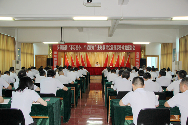 為進(jìn)一步推深做實(shí)“不忘初心、牢記使命”主題教育,按照公司主題教育方案部署,8月2日下午,股份公司副總經(jīng)理、公司黨委書記、董事長孫學(xué)軍以“守初心 擔(dān)使命 找差距 抓落實(shí)——用習(xí)近平新時(shí)代中國特色社會(huì)主義思想指導(dǎo)打造品質(zhì)路橋卓越路橋”為主題,作了一場主題教育黨課暨形勢政策報(bào)告會(huì)。集團(tuán)主題教育第四指導(dǎo)組副組長王永來到會(huì)指導(dǎo)。公司領(lǐng)導(dǎo),中層干部,在肥項(xiàng)目經(jīng)理、黨支部負(fù)責(zé)人,機(jī)關(guān)全體黨員100余人參加了報(bào)告會(huì)。