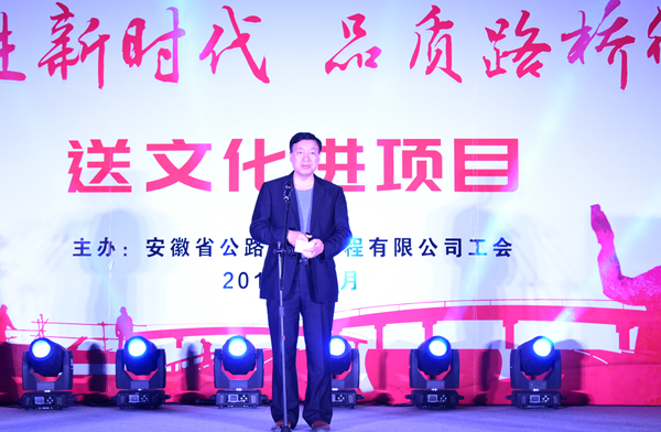 省建設(shè)建材工會主任程德旺應(yīng)邀致辭,他表示本次送文化進(jìn)項(xiàng)目,把職工喜聞樂見的文化形式送到一線,營造健康向上的文化氛圍,增強(qiáng)了企業(yè)的凝聚力和向心力。希望省路橋公司廣大建設(shè)者再接再厲,把干事創(chuàng)業(yè)的熱情貫穿企業(yè)高質(zhì)量發(fā)展全過程,為安徽省建筑業(yè)的發(fā)展作出更大貢獻(xiàn)。