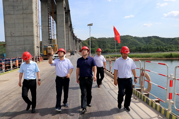 錢總深入施工現(xiàn)場(chǎng),實(shí)地察看了項(xiàng)目工程進(jìn)展、安全質(zhì)量管控、現(xiàn)場(chǎng)施工組織等情況,詳細(xì)詢問了主橋合攏段工期節(jié)點(diǎn)計(jì)劃并就進(jìn)一步加快項(xiàng)目建設(shè)進(jìn)度進(jìn)行了部署安排。在項(xiàng)目南引橋,錢總詢問了安全管控手段、進(jìn)度安排計(jì)劃、質(zhì)量保證措施。他強(qiáng)調(diào),黃河特大橋項(xiàng)目位于小浪底庫(kù)區(qū)內(nèi),項(xiàng)目部要提高站位,進(jìn)一步做好綠色文明施工,把項(xiàng)目建設(shè)對(duì)黃河生態(tài)環(huán)境的影響降到最低,彰顯國(guó)企擔(dān)當(dāng)。