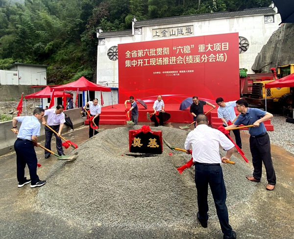 6月19日,安徽省第六批貫徹“六穩(wěn)”重大項目集中開工現(xiàn)場推進(jìn)會(績溪分會場)在公司承建的S456績溪至譚家橋公路上金山隧道項目舉行,該項目開工儀式也同期舉辦??兿h委書記黃德泉現(xiàn)場宣布全縣第六批貫徹“六穩(wěn)”重大項目集中開工??h委常委、常務(wù)副縣長胡旭華發(fā)表講話,公司黨委副書記、總經(jīng)理錢申春應(yīng)邀出席并致辭??h政府副縣長、縣經(jīng)開區(qū)管委會主任劉林發(fā)主持儀式。