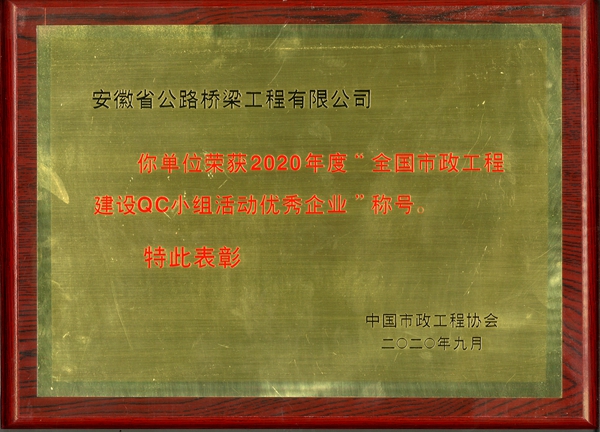 近年來,公司深入貫徹落實(shí)“質(zhì)量強(qiáng)國”戰(zhàn)略,持續(xù)推進(jìn)質(zhì)量QC小組攻關(guān)活動,積極引導(dǎo)和鼓勵(lì)在建項(xiàng)目創(chuàng)新創(chuàng)造、解決和改進(jìn)質(zhì)量問題。今年以來,公司QC成果碩果累累,榮獲中國市政工程協(xié)會QC成果一等獎4項(xiàng)、二等獎3項(xiàng);榮獲中國建筑業(yè)協(xié)會QC成果二等獎2項(xiàng);榮獲中國施工企業(yè)管理協(xié)會QC成果二等獎1項(xiàng);榮獲安徽省市政工程協(xié)會QC成果一等獎8項(xiàng)、二等獎6項(xiàng);榮獲安徽省建設(shè)行業(yè)質(zhì)量與安全協(xié)會QC成果一等獎3項(xiàng)、二等獎2項(xiàng)。