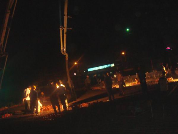 傍晚時分,項目部組織精干力量、調(diào)集性能良好的機械設(shè)備陸續(xù)進入引橋澆注場地。18:00隨著一陣隆隆的炮竹聲響過,淠望路大橋引橋首跨上部結(jié)構(gòu)的混凝土澆注便正式開始了,此次澆筑的混凝土位于大橋10號墩與11號墩之間,混凝土體積320方?,F(xiàn)場施工人員克服重重困難,把安徽路橋人的特別能吃苦特別能戰(zhàn)斗的精神發(fā)揮得淋漓盡致;經(jīng)過十多個小時的連續(xù)工作,于2009年6月22日凌晨五點圓滿完成了首跨混凝土的澆筑,受到業(yè)主、監(jiān)理單位的肯定和贊揚,同時也為今后引橋上部結(jié)構(gòu)混凝土的澆筑工作積累了經(jīng)驗。