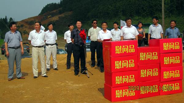 安徽省高速公路總公司副總經理、省高等級公路建設指揮部副指揮長李云貴,省高速公路建設處副處長、黃祁高速公路項目辦公室主任楊朝暉率慰問組,冒著炎炎酷暑深入黃祁高速路基工程10標施工現(xiàn)場召開黃祁高速項目慰問大會,給黃祁項目員工送來了“清涼”,并親手將慰問品和慰問金發(fā)放到一線工作人員的手中。