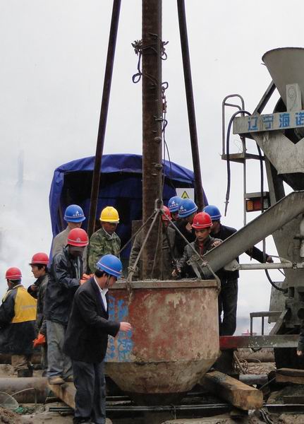 11月10日上午10時,我項目部所屬的皂角樹特大橋(總長1506.08米)60號橋墩2號樁基正式澆注。該樁基樁長21米,樁徑1.5米,所用混凝土為C30水下混凝土,這是宜巴高速第二高監(jiān)辦所轄5個標(biāo)段內(nèi)第一根開始澆注的樁基。宜巴高速指揮部、第二代表處及高監(jiān)辦的領(lǐng)導(dǎo)對此高度關(guān)注,在我標(biāo)段橋梁一工區(qū)見證了樁基澆注全過程。在澆注施工前項目部也做了充分的準(zhǔn)備工作,所有工序均是高標(biāo)準(zhǔn),嚴(yán)要求,嚴(yán)格按照規(guī)范施工?!暗谝粯丁钡某晒沧⒃诤背浞终故玖税不章窐蛉丝茖W(xué)嚴(yán)謹?shù)氖┕ぞ瘛?SPAN lang=EN-US>