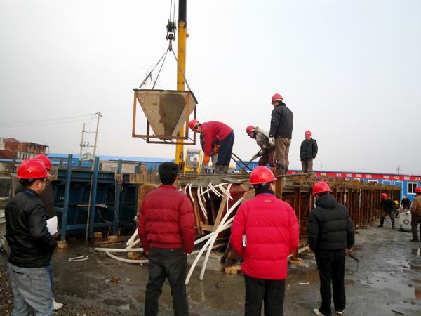 我部人員自正月初八進(jìn)場以來,克服近半個月的連續(xù)陰雨天氣,精心準(zhǔn)備,合理組織,完成了預(yù)制場建設(shè)、材料進(jìn)場、設(shè)備標(biāo)定調(diào)試、標(biāo)準(zhǔn)實(shí)驗(yàn)等一系列工作,從而保證了此次箱梁的順利澆筑。此次澆筑,是我部拌合站建成以來,首次投入正式結(jié)構(gòu)工程的生產(chǎn),也拉開了下一步規(guī)模生產(chǎn)的序幕。