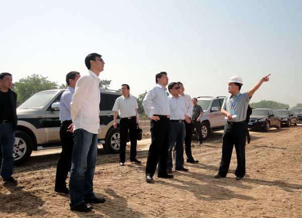 項(xiàng)目經(jīng)理張慶書就我標(biāo)段的工程概況,現(xiàn)階段工作開展情況及存在的問題向周副市長作了詳細(xì)的介紹。在聽取了張經(jīng)理的匯報(bào)后,周副市長與宣州區(qū)交通局副局長梁世華,項(xiàng)目辦主任方煜認(rèn)真討論了我標(biāo)段K9+314支線上跨橋中存在的主要問題并作出批示:要求設(shè)計(jì)單位對支線上跨和主線上跨兩套方案進(jìn)行詳細(xì)的技術(shù)及經(jīng)濟(jì)可行性分析,并結(jié)合當(dāng)?shù)貙?shí)際情況,務(wù)實(shí)地斟酌設(shè)計(jì)方案;另外,要求沿線地方政府部門配合處理好地方問題,保證施工的正常進(jìn)行。