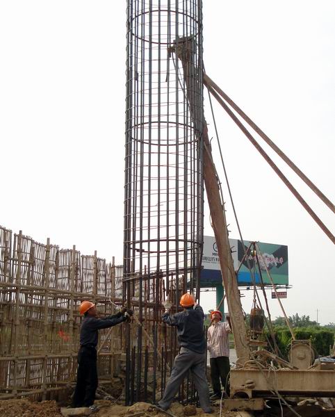 立柱施工的開展,使我部施工又向前邁了一大步。它不僅意味著下部結(jié)構(gòu)施工的全面展開,也是為完成業(yè)主下達的年內(nèi)施工計劃打下了一根“硬樁”。