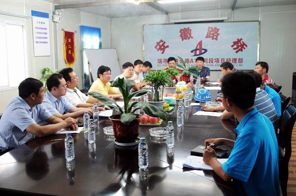 會(huì)上,投資集團(tuán)劉總肯定了我項(xiàng)目部在施工建設(shè)方面所取得的成績(jī),認(rèn)為瑞尋A7標(biāo)項(xiàng)目部總體施工計(jì)劃好,施工組織能力強(qiáng),給整個(gè)工程的建設(shè)創(chuàng)造了良好的條件,也給兄弟標(biāo)段項(xiàng)目部施工建設(shè)起到了示范作用。同時(shí)希望安徽路橋項(xiàng)目部繼續(xù)鼓足干勁,在以后的安全生產(chǎn)和質(zhì)量管理各方面為瑞尋高速公路工程建設(shè)起到“標(biāo)兵”作用。