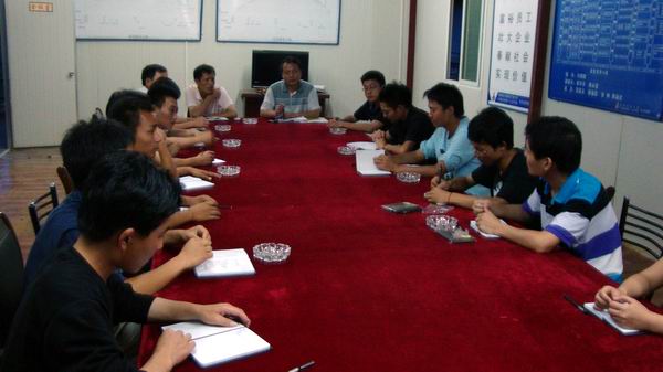 會(huì)議開(kāi)始,5位新員工簡(jiǎn)單的進(jìn)行了自我介紹。張副經(jīng)理對(duì)公司的文化、本標(biāo)段工程概況作了簡(jiǎn)單的說(shuō)明后,胡總工對(duì)新員工提出三點(diǎn)要求:1、心要靜下來(lái),熱情要保持;2、端正態(tài)度,珍惜工作機(jī)會(huì);3、盡快適應(yīng)工作環(huán)境,提升專(zhuān)業(yè)技能和素質(zhì)。