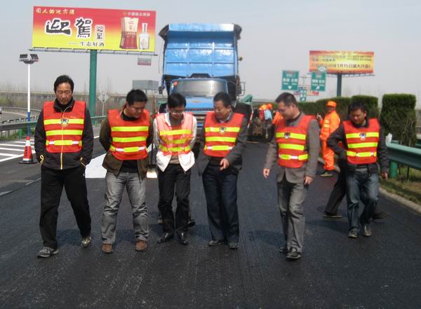 曹部長一行首先來到我部施工現(xiàn)場(chǎng),視察了施工段原路面處理及瀝青攤鋪壓實(shí)全過程。并詳細(xì)詢問了混合料的攤鋪溫度及壓實(shí)工藝。視察過程中,曹部長強(qiáng)調(diào):安全是施工工作的排頭兵,在保障施工質(zhì)量和進(jìn)度的同時(shí)一定要加大安全工作的投入力度。正在施工的蕪馬互通區(qū)由于車流量較大,我部及時(shí)采取了半封閉半通行的施工方案。施工過程中,我部專職安全員一刻不離施工現(xiàn)場(chǎng),全程監(jiān)督安全工作。在大家的共同努力下,施工秩序井然、車輛通行順暢有序。曹部長一行對(duì)此表示滿意。緊接著,曹部長一行又來到我部施工后場(chǎng),對(duì)我部備料及試驗(yàn)檢測(cè)環(huán)節(jié)進(jìn)行了視察。曹部長說:備料及試驗(yàn)檢測(cè)環(huán)節(jié)是我們施工工作得以順利開展的前提和保障。我們一定要從細(xì)微處著手,緊扣各個(gè)環(huán)節(jié),把好質(zhì)量關(guān)。我部項(xiàng)目經(jīng)理薛斌表示:我部一定恪守各項(xiàng)管理規(guī)范,保證蕪宣高速公路瀝青路面養(yǎng)護(hù)工程按時(shí)、按質(zhì)、按量地完成施工。