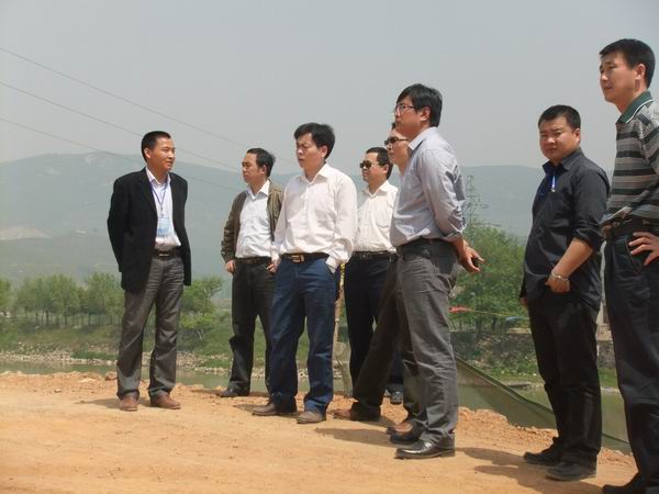 何局長首先來到我部北山河大橋施工現(xiàn)場,觀看主橋11#墩部位插板樁完成后的主墩承臺開挖情況及引橋樁基的施工情況。在聽完項(xiàng)目經(jīng)理冷峰對當(dāng)前大橋施工的系統(tǒng)介紹后,何局長對我部大橋施工的質(zhì)量控制及安全管理提出了具體要求。