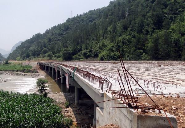 馬家河1號(hào)橋?yàn)樵摌?biāo)段采用吊車(chē)架設(shè)的第一座橋,該橋的貫通極大的鼓舞了項(xiàng)目部的士氣。