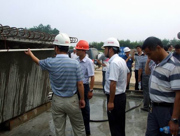 在箱梁場大家詳細(xì)討論了箱梁噴淋養(yǎng)生工藝的細(xì)節(jié)和優(yōu)化方案,對箱梁預(yù)制端頭質(zhì)量控制等各個細(xì)節(jié)進(jìn)行了充分的交流,也提出了寶貴的意見。最后,大家就箱梁場地布設(shè)、臨時用地等各項建設(shè)問題進(jìn)行了探討。