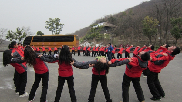 4日一大早,在凜冽的寒風(fēng)中,大家分成三個組,并起好各自的隊名:同心隊、利劍隊和團(tuán)結(jié)隊。拓展訓(xùn)練的項目共分為背摔、挑戰(zhàn)150、七巧板、極速60秒、驛站傳書、創(chuàng)意晚會、跨越斷橋、單杠8個項目。