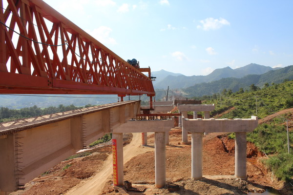 昌寧高速C5標(biāo)完成龍坊高架第一片40米T梁架設(shè) 發(fā)布時(shí)間:2014年09月18日 來(lái)源:昌寧高速C5標(biāo) 發(fā)布人: 作者:王振堂 瀏覽:2794次 9月18日上午9時(shí)18分,昌寧高速公路C5標(biāo)龍坊高架第一片40米T梁順利架設(shè)成功,標(biāo)志著作為全線控制性工程的龍坊高架橋進(jìn)入了上部施工階段,極大地提振了項(xiàng)目部全體員工和參建隊(duì)伍的戰(zhàn)斗精神。